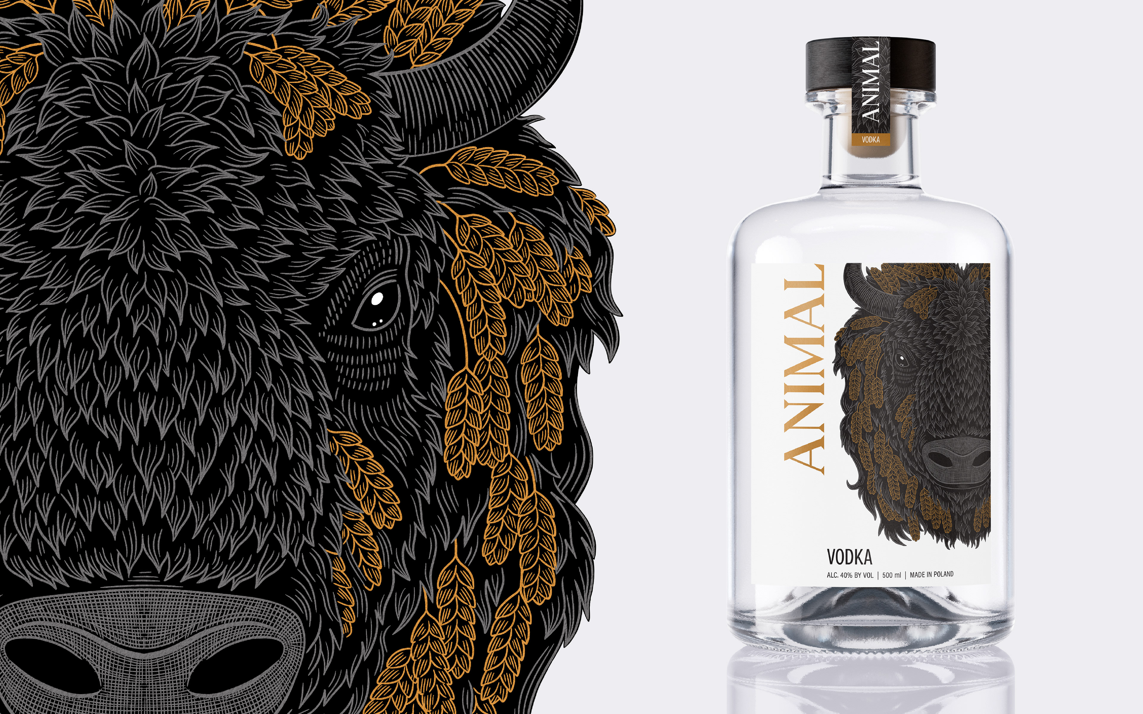 A refreshed majestic Bison artwork, originally made in 2017 for advertising agency Heart & Brain, became the starting point for the creation of the ANIMAL VODKA brand design.