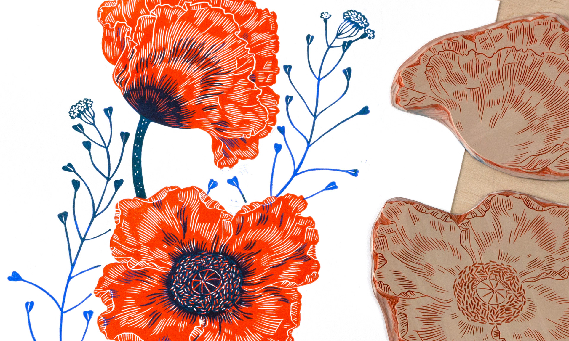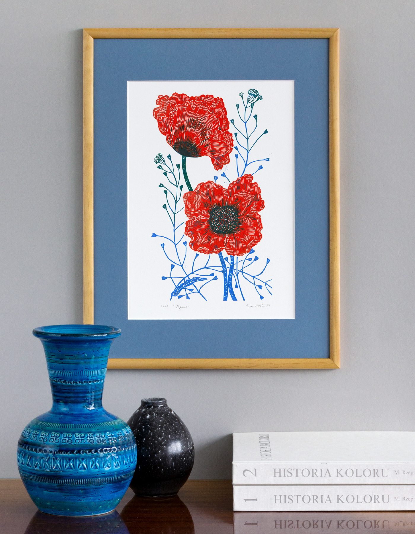 "Poppies" linocut print, 21 x 30 cm, 2021